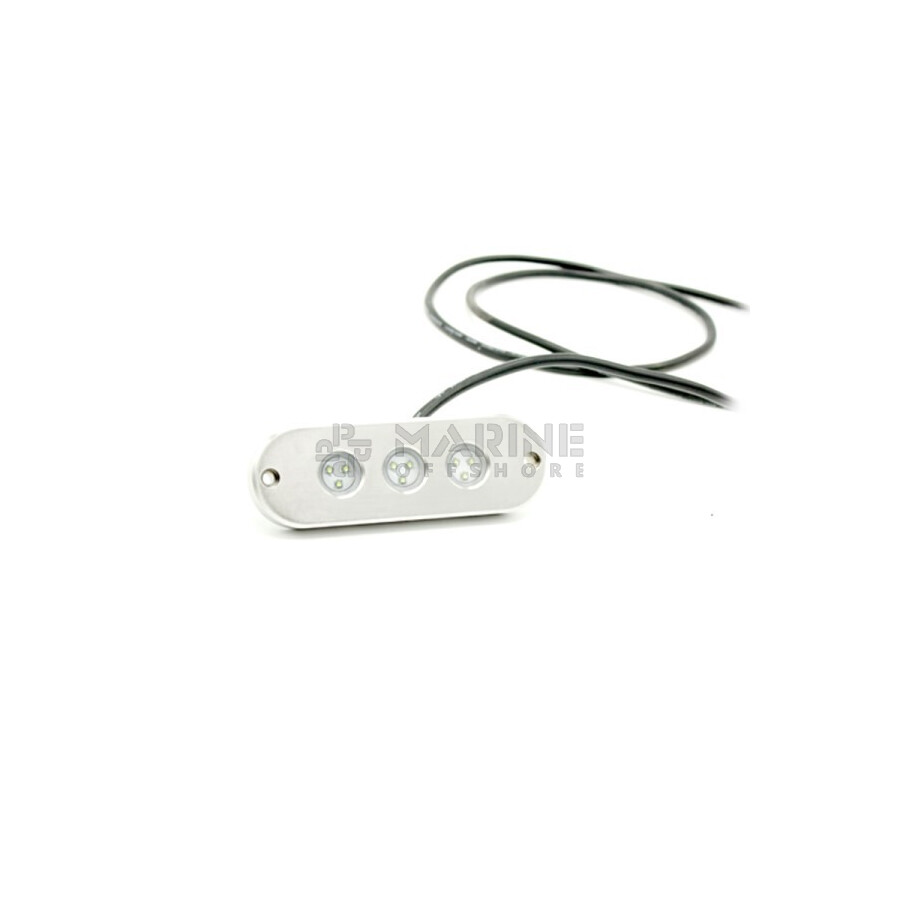 De Apache J-LED Classic Series - Triple - APC-45-SY onderwater LED verlichting kenmerkt zich door het platte ontwerp en is gemaakt van RVS316L roestvrijstaal. Door het uitgekiende design met 3 of 6 hoogwaardige CREE LED bundels geeft de Apache Classic series een mooie brede lichtbundel onder water.