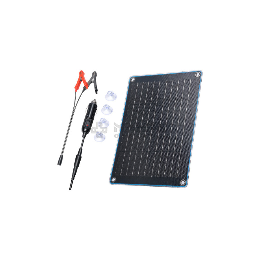 Compact Zonnepaneel (31.7 x 21.1 x 0.23 cm) geleverd met accu klemmen en Sigarettenaanstekerplug, 10W, 19.3V VOC, 0.66A ISC