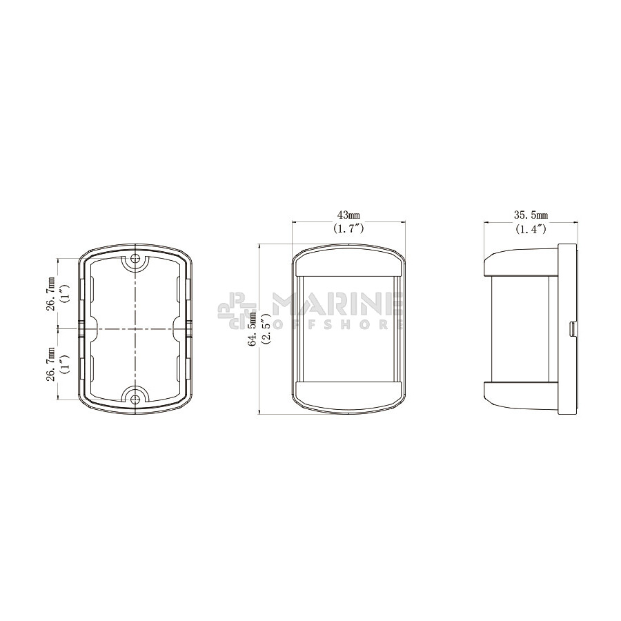 Toplicht - Vierkant Navigatielicht Mini - 12V 1W - IP67 - zicht 2NM - Wit - 64.5x43x35.5 mm
